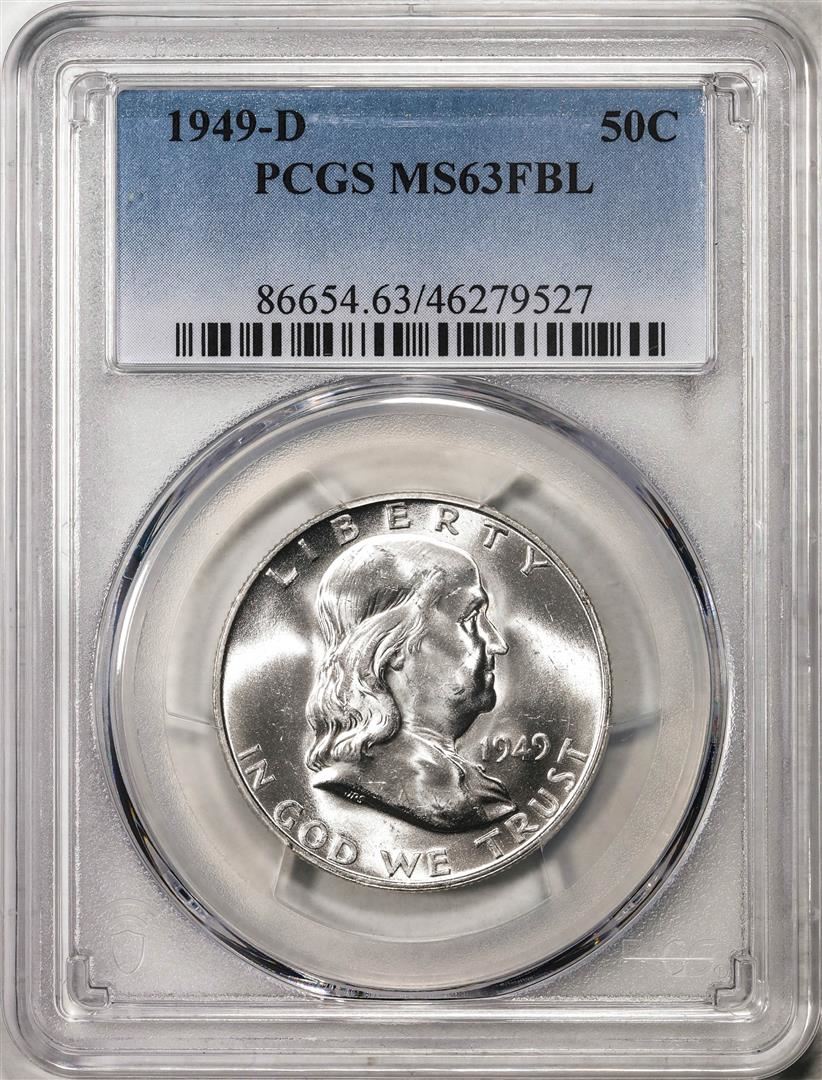 One 1949-D Franklin Half Dollar Coin PCGS MS63FBL. PCGS Graded.
