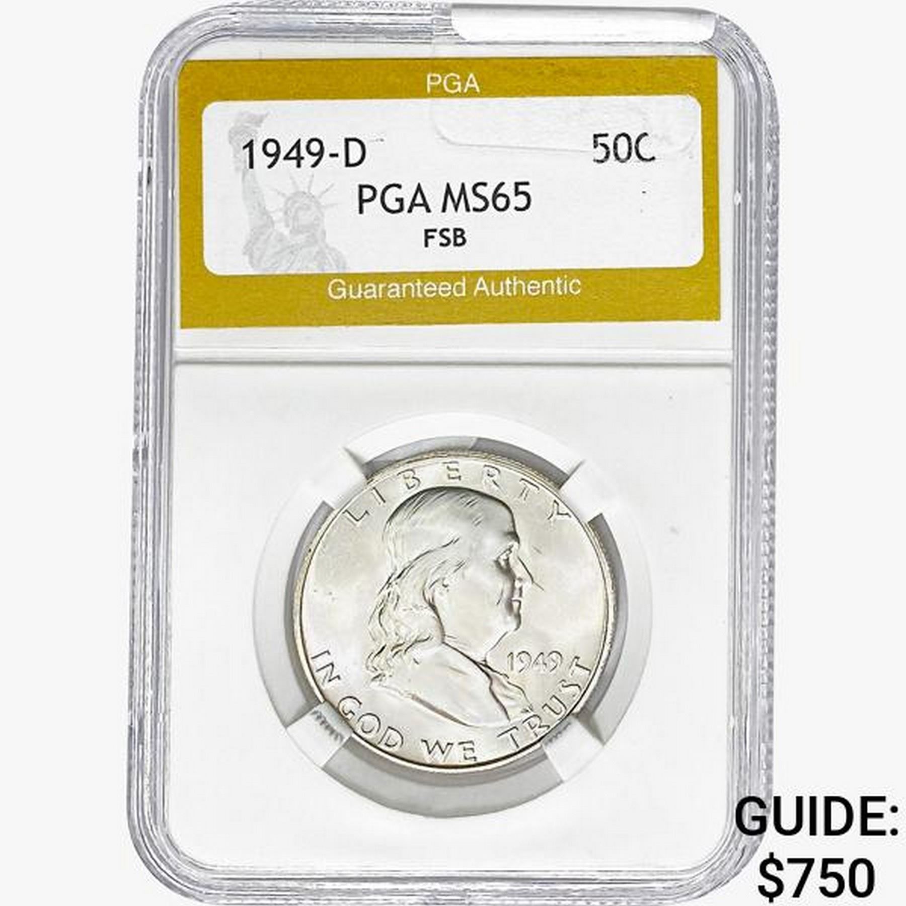 1949-D Franklin Half Dollar PGA MS65 FSB