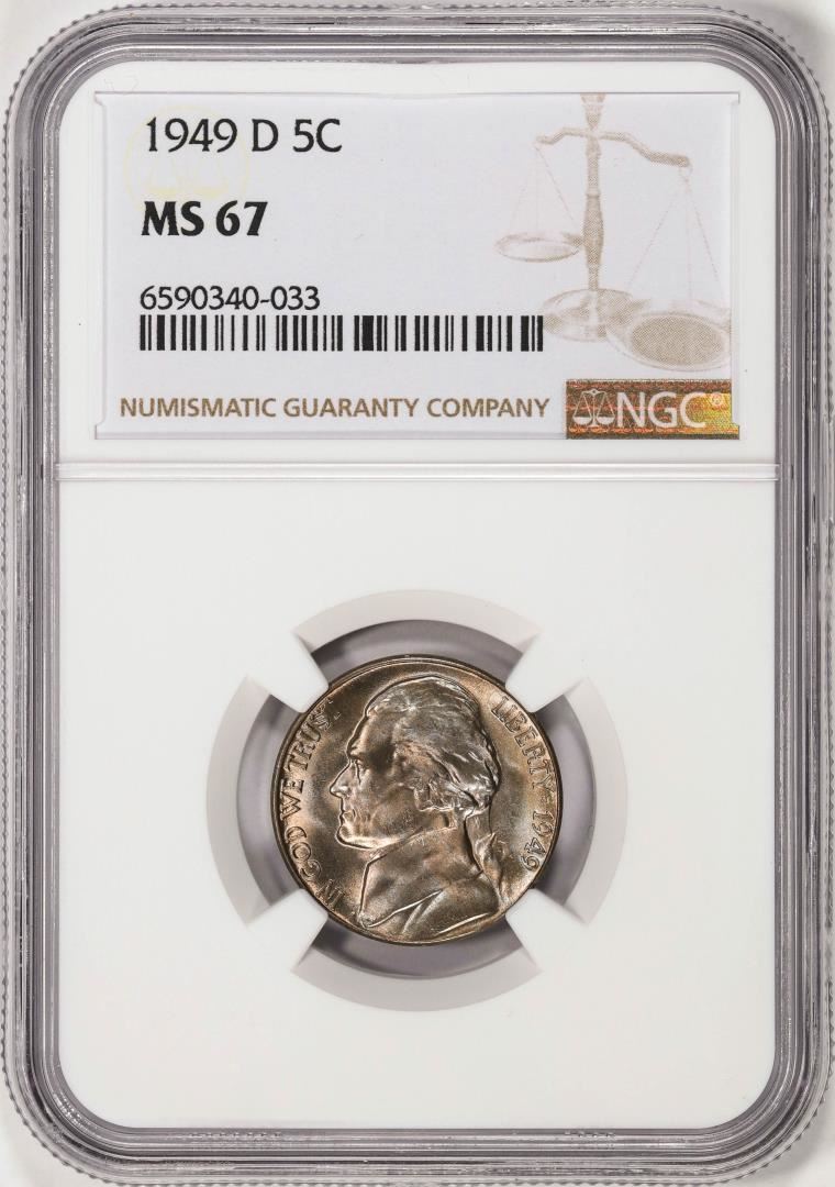 One 1949-D Jefferson Nickel Coin NGC MS67. NGC Certified.