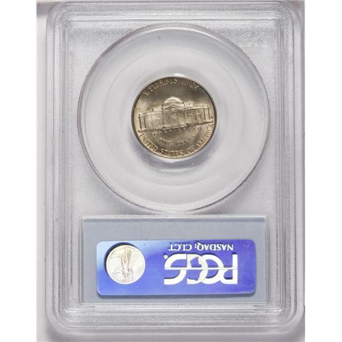 <B>1949-D/S<5C> MS66 PCGS.</B></I> FS-032. Medium honey-gold toning enriches this satiny and carefully preserved overmintmarked nickel. The strike is generally crisp, although the lower stairs and Jefferson's jaw show the usual softness. Population: 46 in 66, 0 finer (9/06).