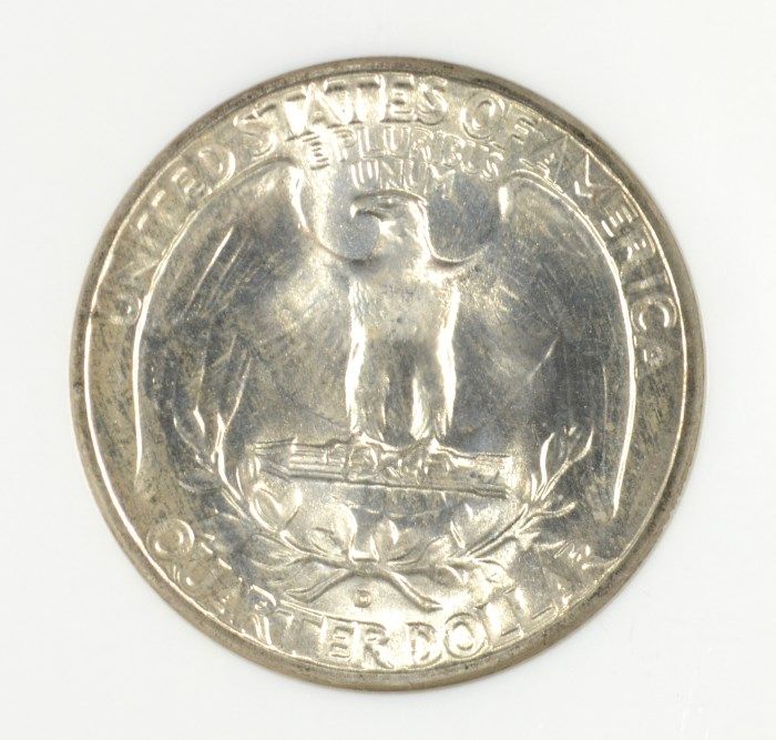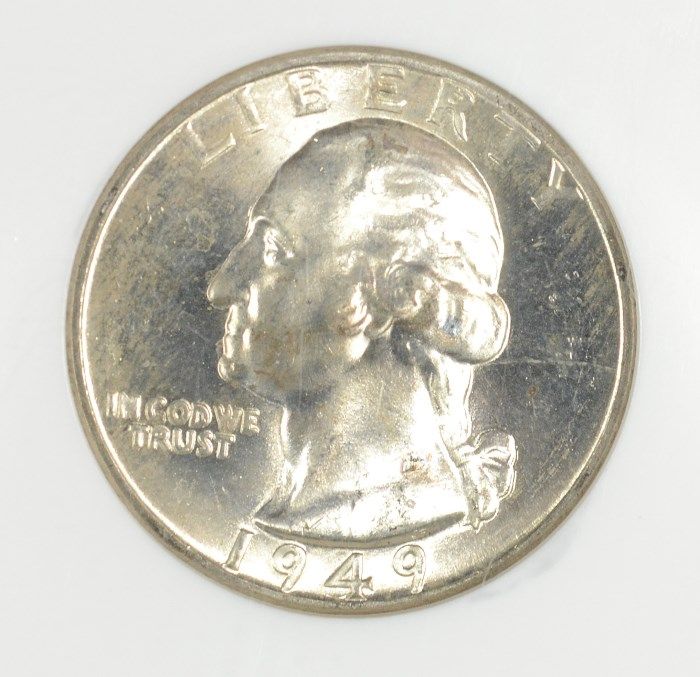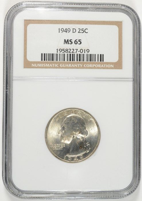 1949-D WASHINGTON QUARTER, NGC MS-65 WHITE GEM