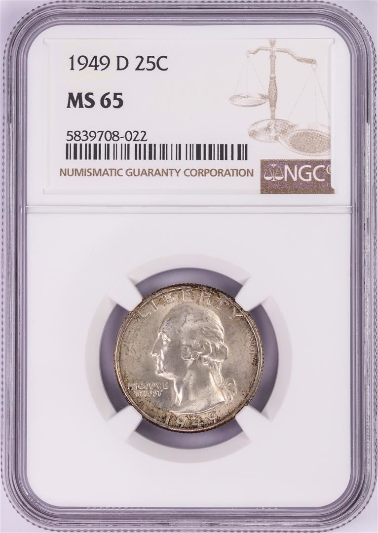 One 1949-D Washington Quarter Coin NGC MS65. NGC Certified.