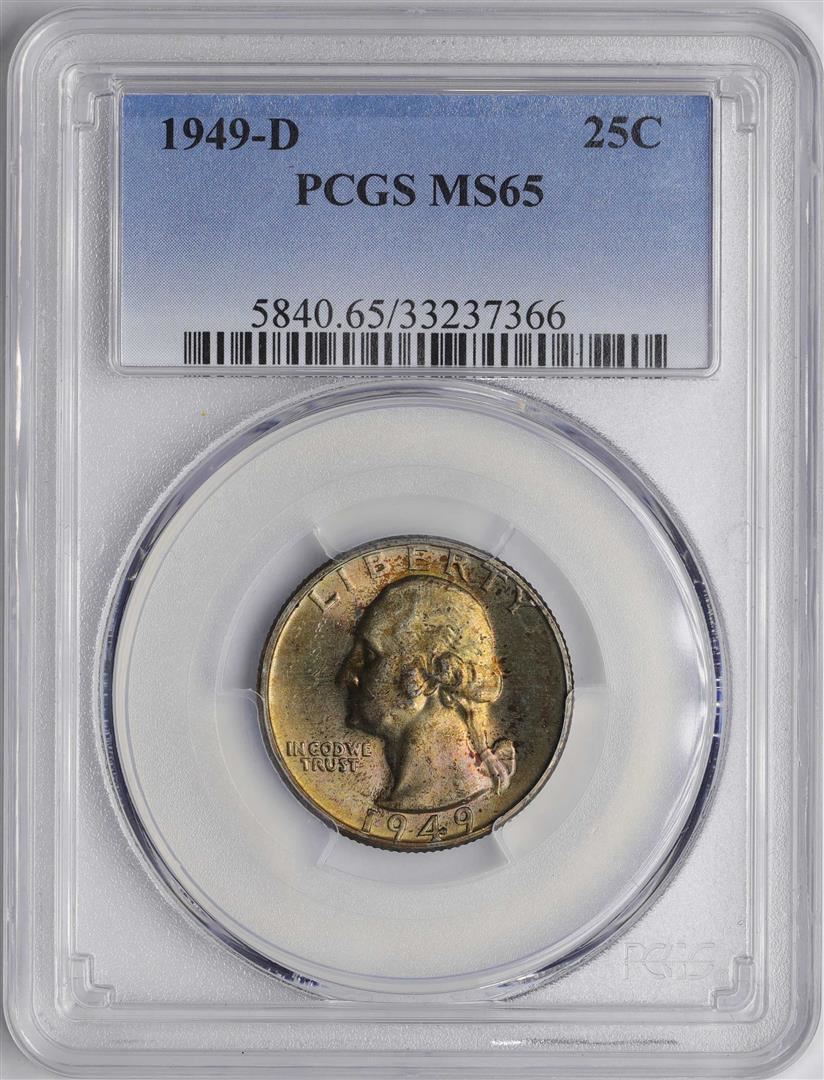 1949-D Washington Silver Quarter Coin PCGS MS65 AMAZING TONING