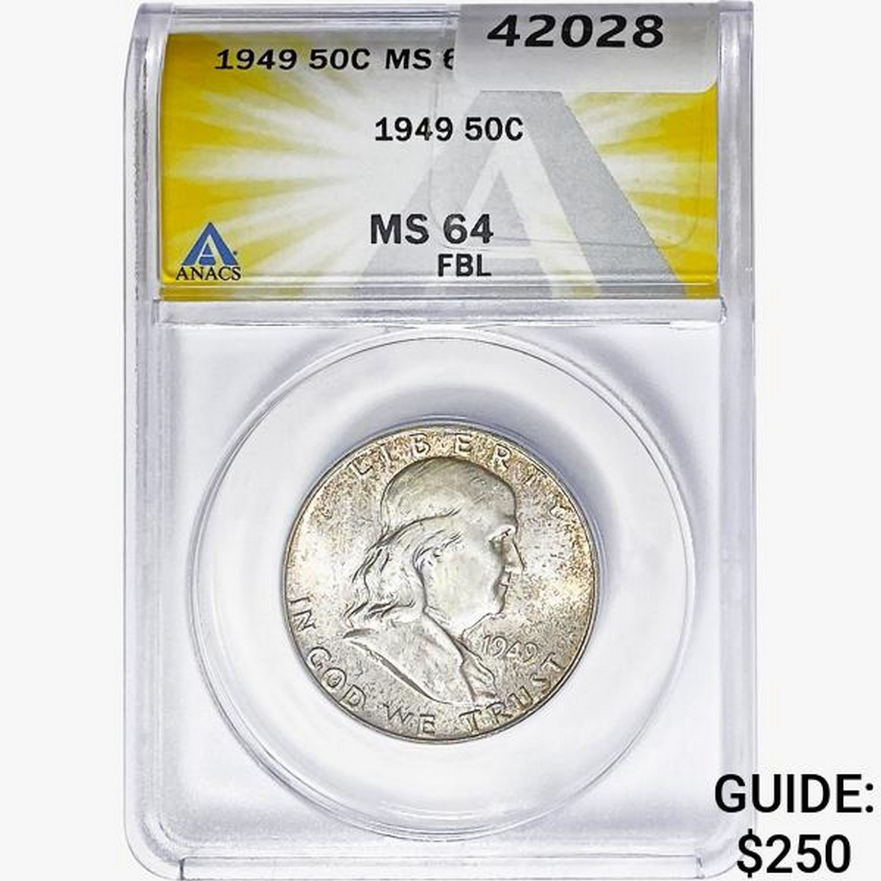 1949 Franklin Half Dollar ANACS MS64 FBL