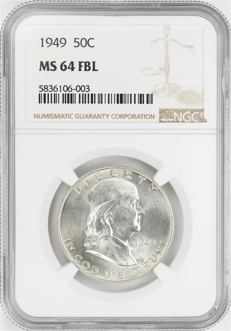 One 1949 Franklin Half Dollar Coin NGC MS64FBL. NGC Certified.