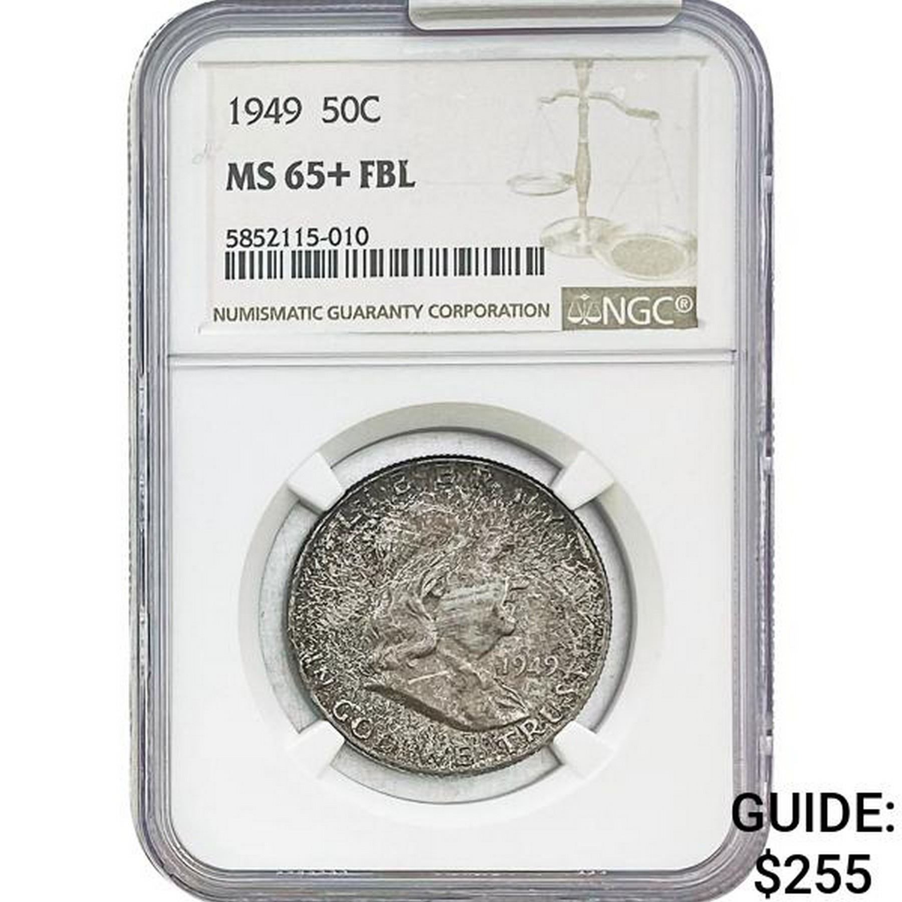 1949 Franklin Half Dollar NGC MS65+ FBL