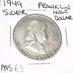 1949 Franklin SILVER Half Dollar *VERY RARE MS-63 HIGH GRADE - NICE COIN*!! ***Coin & Currency Grades, Conditions and Values are not Northern Colorado Estate Liquidators Responsibilty. Grades, Condition and Values are determined by Consigner(s) & Buyers ONLY***