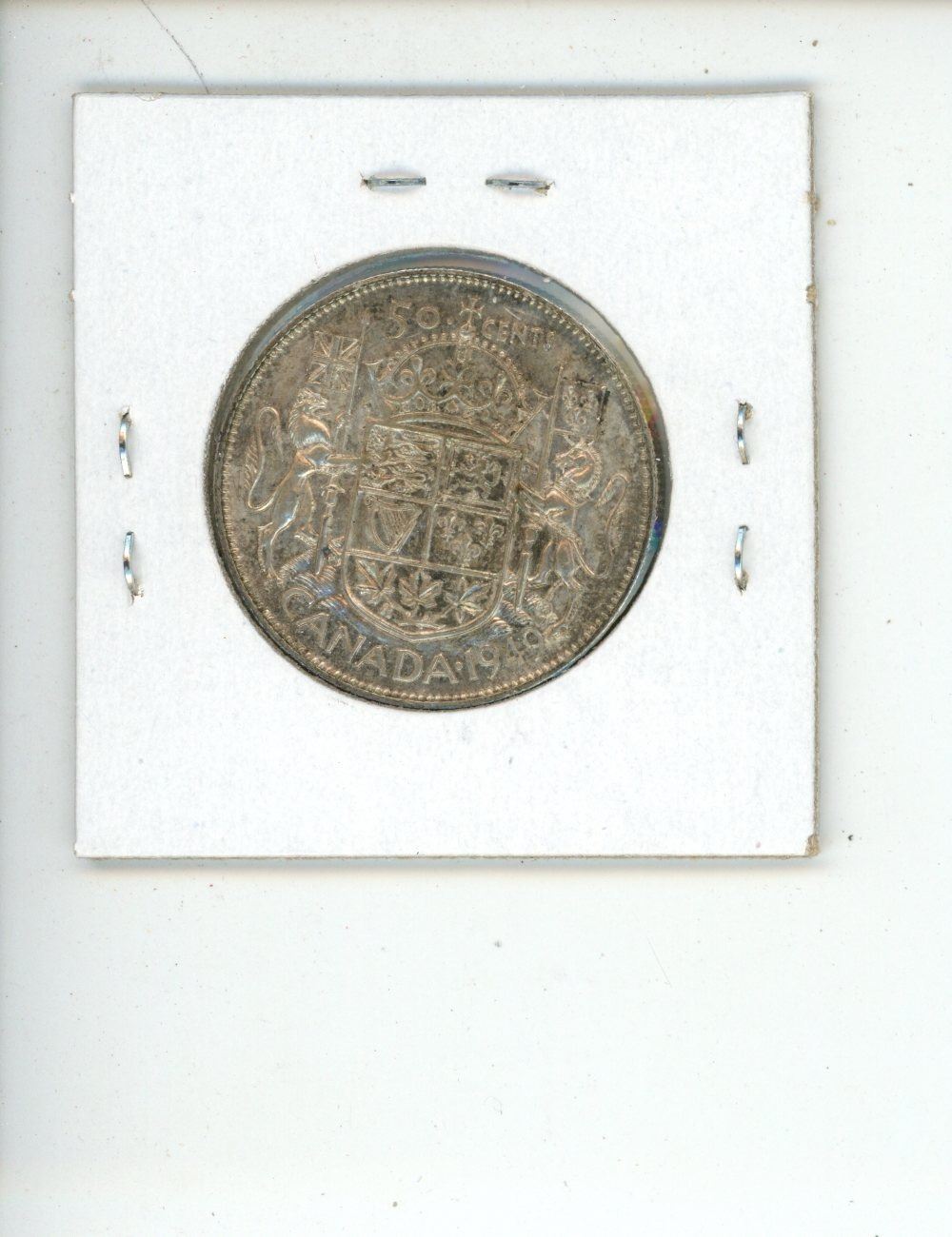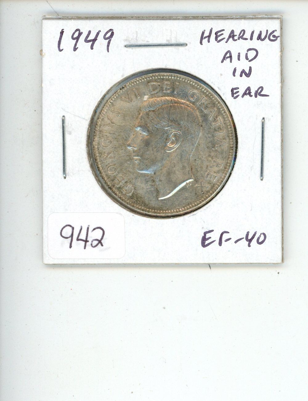 1949 George VI Silver 50 Cents. Hearing Aid in King’s Ear from Die Clash. EF-40. Nice.