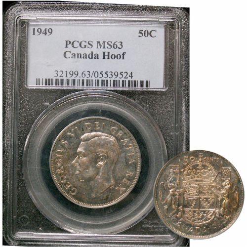 1949 "Hoof" 50¢ PCGS MS-63 Light toning over full underlying luster. Excellent strike with clean fields and lovely surfaces.