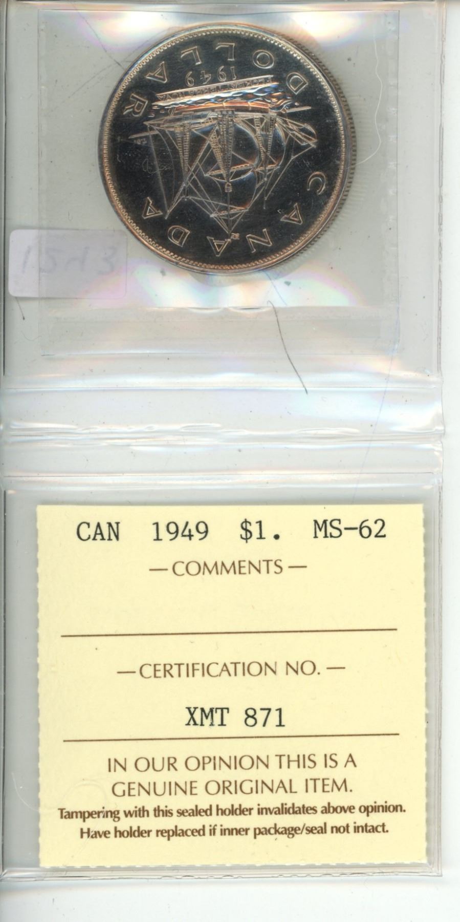 1949 ICCS Graded - Canadian Silver Dollar - MS62