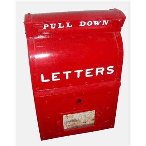 I currently have two different ones of these for sale. This one features the year "1949" stamped into the side. It also features a metal "Hours of Collection" sign on the front. The top mail slot opens for letters to be inserted. It has been repainted a vibrant red and white. I have another one that is slightly different, check my other inventory to see that one, they look great together! Brought to you by Sand Hill East.