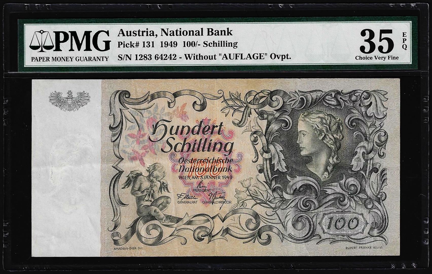 One 1949 National Bank of Austria 100 Schilling Note Pick# 131 PMG Choice Very Fine 35EPQ. PMG Certified.