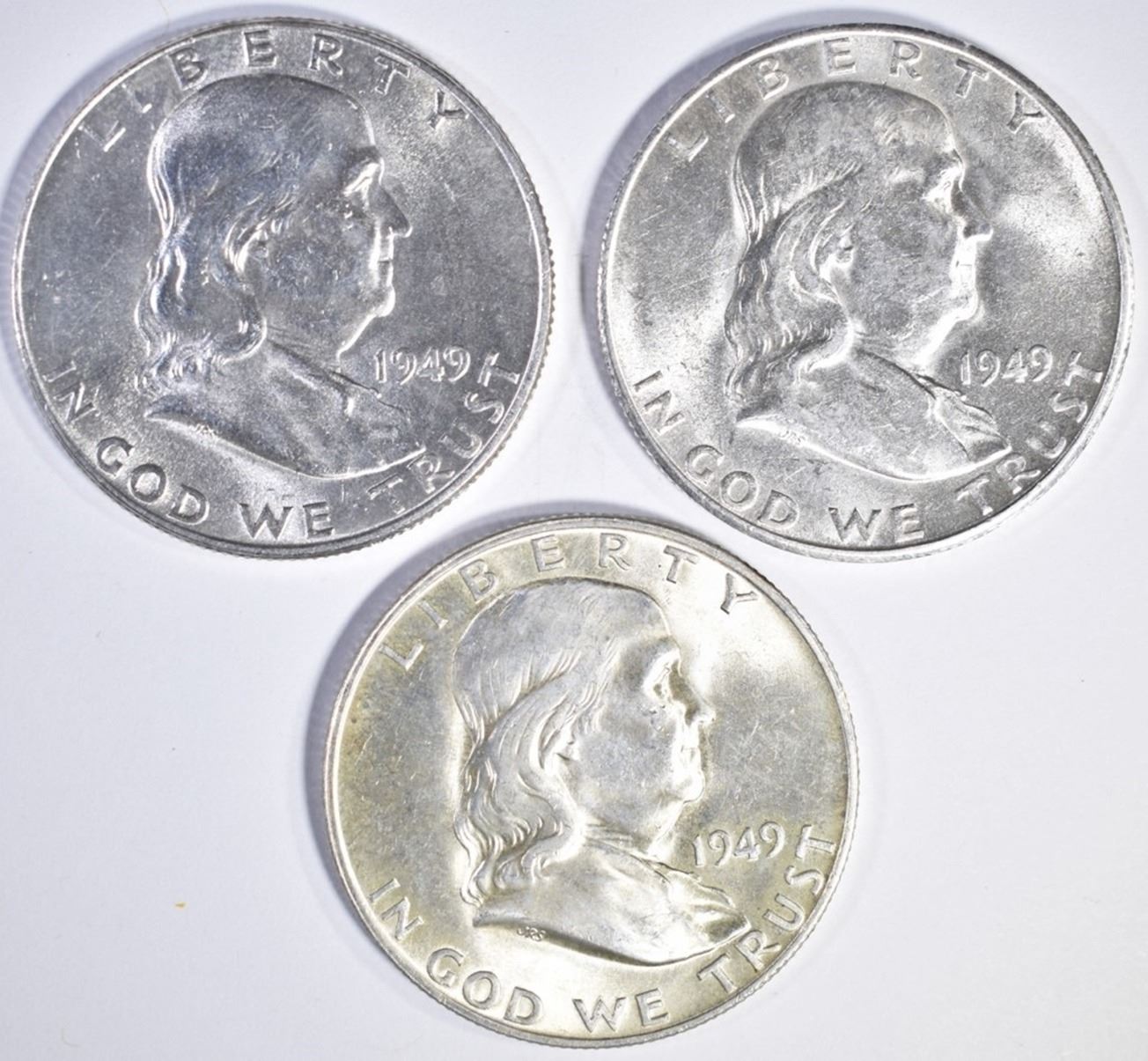 1949 P, D, S FRANKLIN HALF DOLLARS CH BU