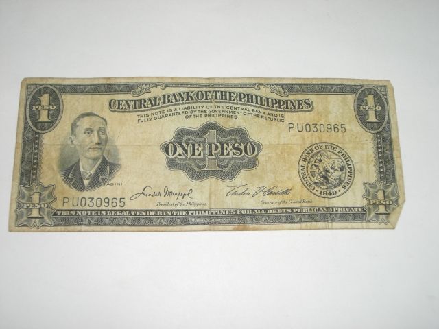 1949 PHILIPPINES 1 ONE PESO *VERY RARE NOTE - AU HIGH GRADE*!! ***Coin, Currency Grades, Conditions and Values are not Northern Colorado Estate Liquidators Responsibilty. Grades, Condition and Values are determined by Consigner(s) & Buyers ONLY***