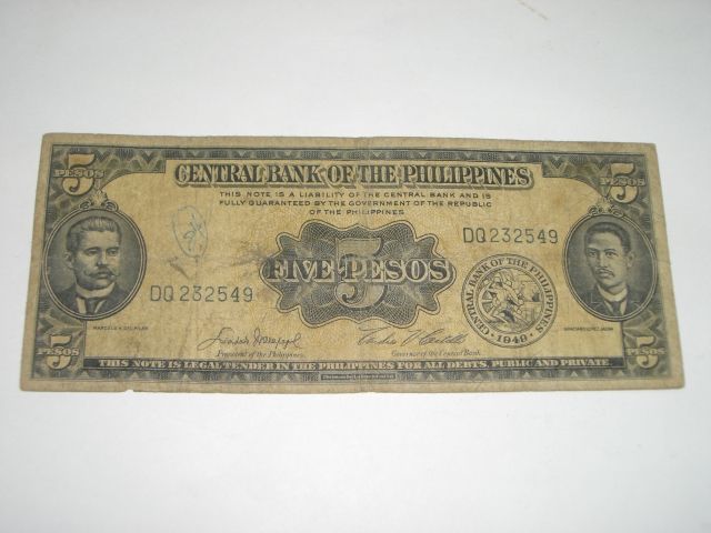 1949 PHILIPPINES 5 FIVE PESOS *VERY RARE NOTE - AU HIGH GRADE*!! ***Coin, Currency Grades, Conditions and Values are not Northern Colorado Estate Liquidators Responsibilty. Grades, Condition and Values are determined by Consigner(s) & Buyers ONLY***