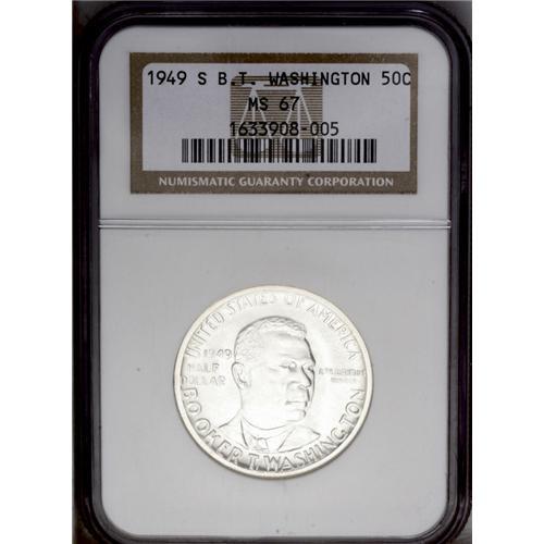 1949-S 50C Booker T. Washington MS67 NGC. The present 1949-S[50C] Booker T. Washington MS67 NGC.