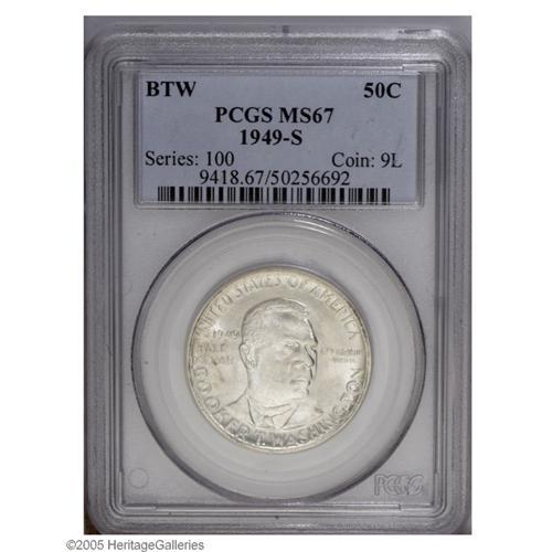 <B>1949-S<50C> Booker T. Washington MS67 PCGS.</B></I> While the current PCGS population data suggests that five examples of this issue have been certified at the Superb Gem grade level, it is hard to imagine that any of those coins could be any finer than this one. This example is sharply struck and fully brilliant with extraordinary surfaces. Population: 5 in 67, 0 finer (10/05).