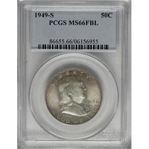 <B>1949-S 50C MS66 Full Bell Lines PCGS.</B></I> PCGS Population (115/3). NGC Census: (12/0). Numismedia Wsl. Price for NGC/PCGS coin in MS66: $650. (#86655)<BR><BR><b>Shipping:</b> Coins & Currency (<a target="_blank" href="http://www.heritageauctions.com/common/shipping.php">view shipping information</a>)