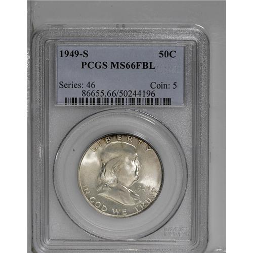 <B>1949-S<50C> MS66 Full Bell Lines PCGS.</B></I> Deep bronze-russet fringe toning is centered at 12 o'clock on the obverse and covers much of the periphery on the reverse. Lustrous and sparkling with a solid strike.