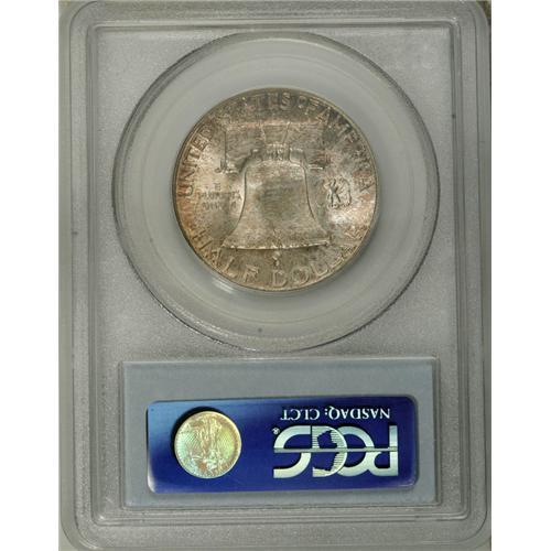 <B>1949-S 50C MS66 Full Bell Lines PCGS.</B></I> Fully struck and virtually pristine, with a coating of speckled terra cotta and pale green patina over each side, and unusual semi-prooflikeness noted in the obverse fields. An outstanding Premium Gem Franklin half.<BR><BR><b>Shipping:</b> Coin/Currency (<a target="_blank" href="http://www.heritageauctions.com/common/shipping.php">view shipping information</a>)