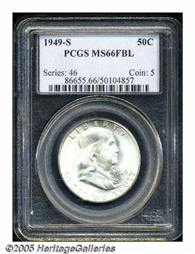<B>1949-S<50C> MS66 Full Bell Lines PCGS.</B></I> Lustrous surfaces are virtually untoned, and display sharply struck devices. A few tiny marks are noted on Franklin's portrait.<BR><I>From The Southern Collection.</B></I>