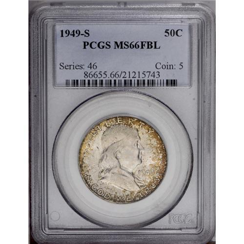 1949-S 50C MS66 Full Bell Lines PCGS. Richly toned in 1949-S[50C] MS66 Full Bell Lines PCGS.