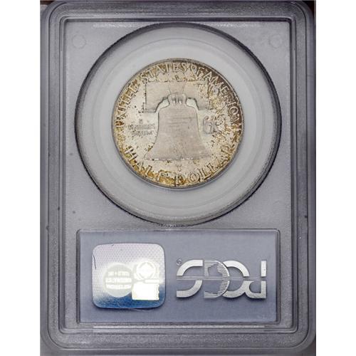 <B>1949-S<50C> MS66 Full Bell Lines PCGS.</B></I> Richly toned in mottled antique-russet and olive-gold iridescence that is prominent near the peripheries, leaving the centers color-free. Smooth, sharply struck, and attractive. The key date in the Franklin half dollar series. Population: 110 in 66, 3 finer (1/06).