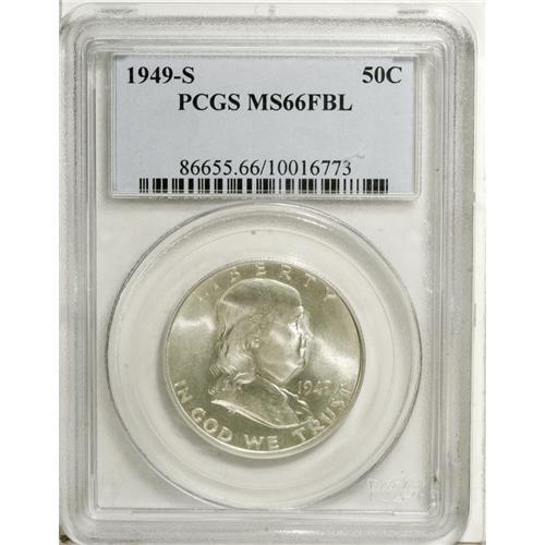 <B>1949-S 50C MS66 Full Bell Lines PCGS.</B></I> Slightly satiny with a blush of rose in the fields. Highly appealing. PCGS has awarded a higher grade to just three pieces (10/06).<BR><BR><b>Shipping:</b> Coin/Currency (<a target="_blank" href="http://www.heritageauctions.com/common/shipping.php">view shipping information</a>)