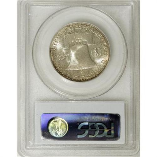<B>1949-S 50C MS66 PCGS.</B></I> Beautiful sunset-orange toning adorns the obverse, while lighter speckled patina decorates the reverse. Highly lustrous with fully struck design elements and unblemished surfaces. This first year issue is one of the key dates in the Franklin half dollar series. <BR><BR><B>Coin Engraver:</B> John R. Sinnock<BR><BR><b>Shipping:</b> Coins & Currency (<a target="_blank" href="http://www.heritageauctions.com/common/shipping.php">view shipping information</a>)