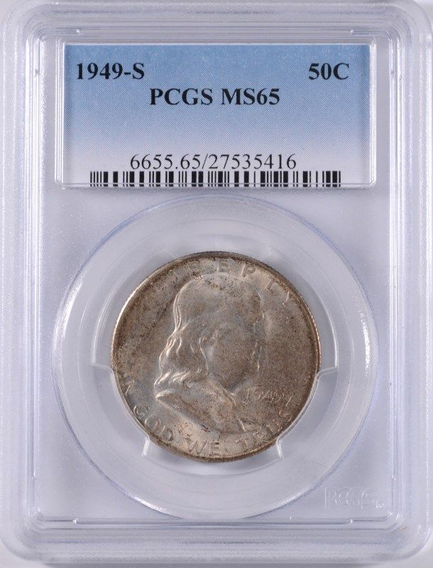 1949-S FRANKLIN HALF DOLLAR,. PCGS MS-65 NICE ORIGINAL TONING