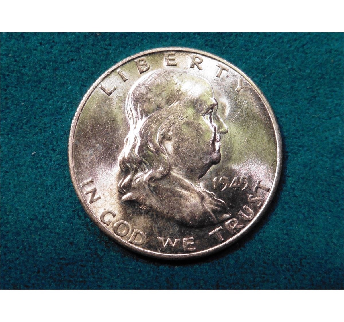 1949 S Franklin Half-Dollar. Brilliant Uncirculated. Red Book value $140.00.