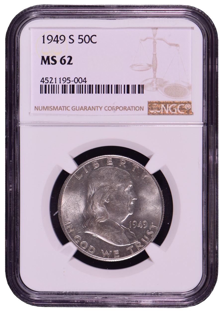 One 1949-S Franklin Half Dollar Coin NGC MS62.