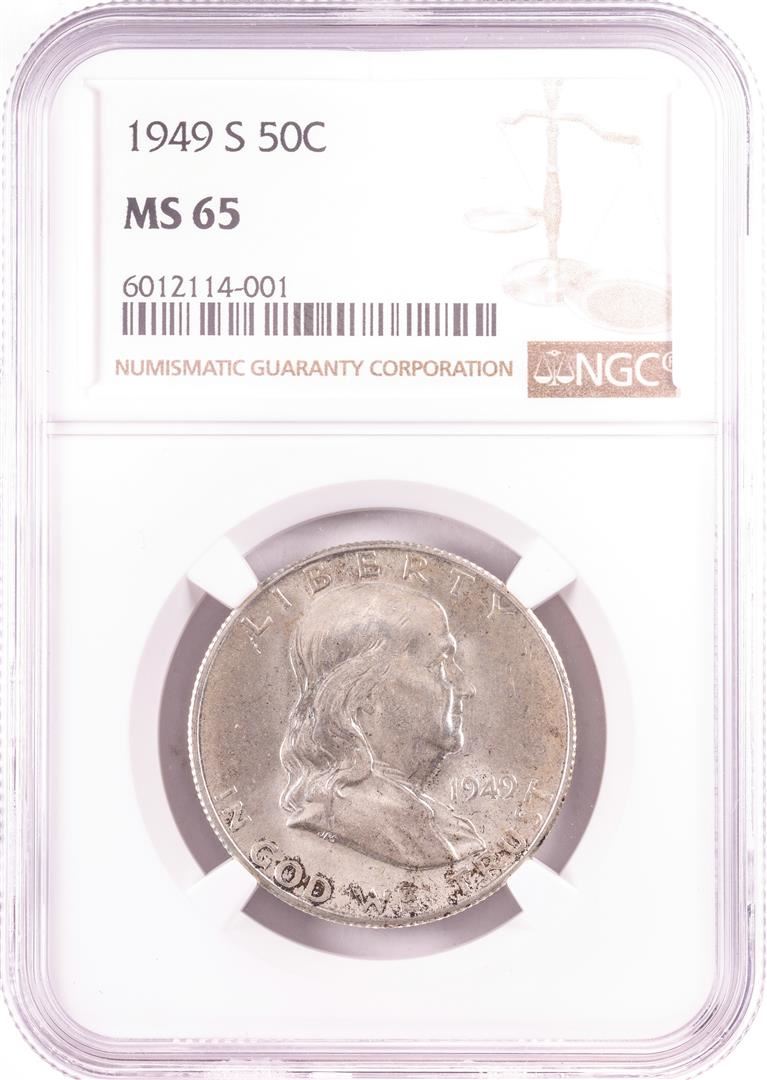 One 1949-S Franklin Half Dollar Coin NGC MS65. NGC Certified.
