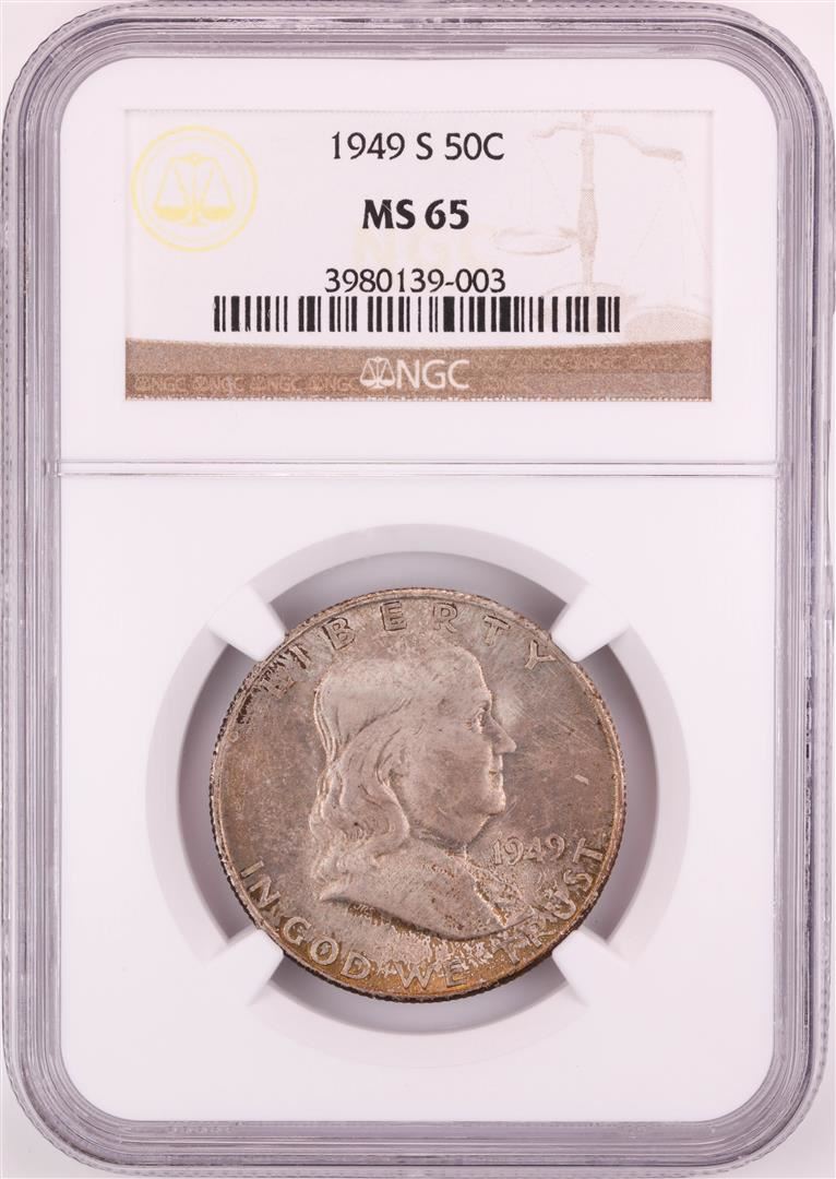 One 1949-S Franklin Half Dollar Coin NGC MS65. NGC Certified.