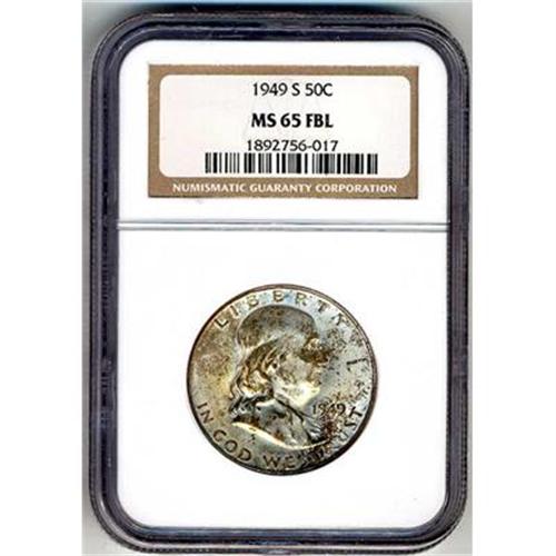 Uneven but all original toning over silvery surfaces. Always difficult to acquire fully struck, this 1949-S issue seemed plagued with soft strikes on the Liberty bell.