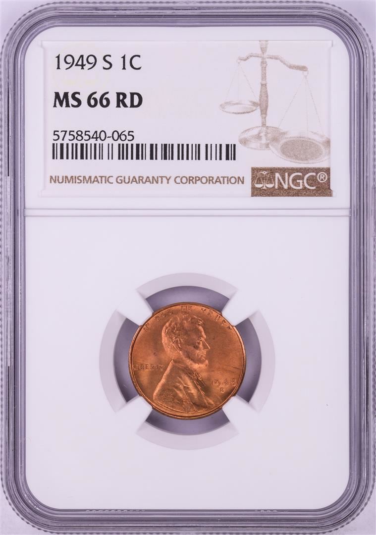 One 1949-S Lincoln Wheat Cent Coin NGC MS66RD. NGC Certified.