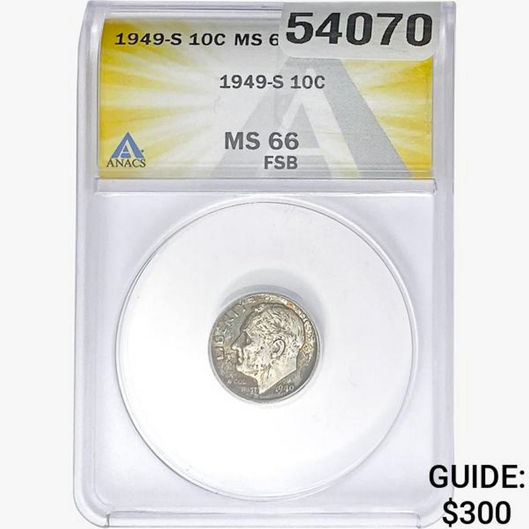 1949-S Roosevelt Dime ANACS MS66 FSB