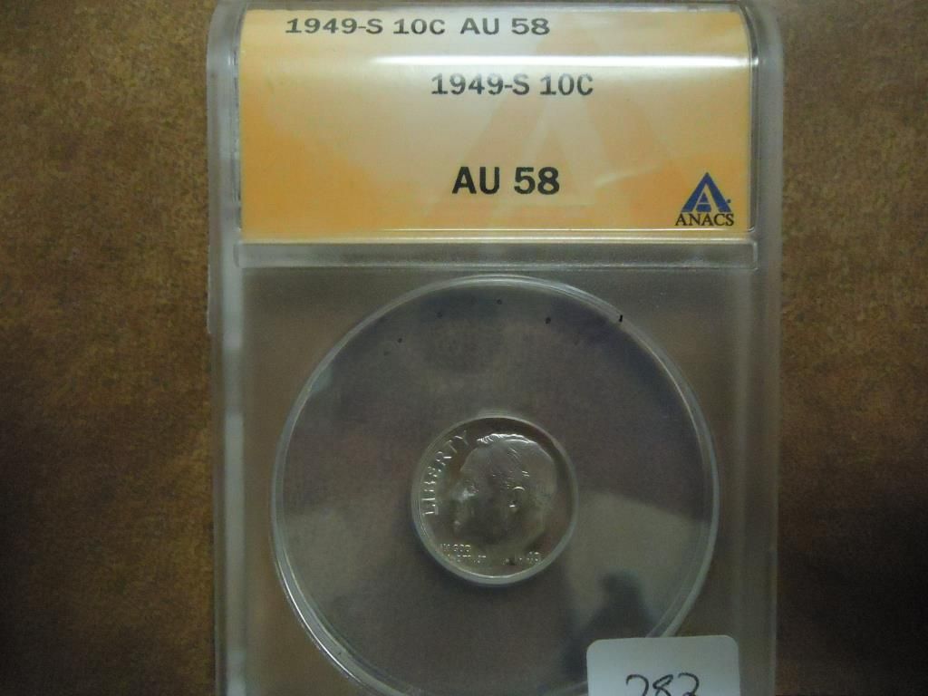 1949-S SILVER ROOSEVELT DIME ANACS AU58