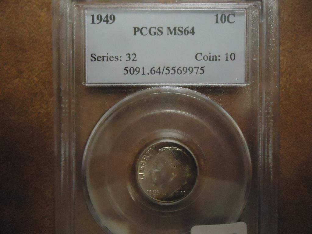 1949 SILVER ROOSEVELT DIME PCGS MS64