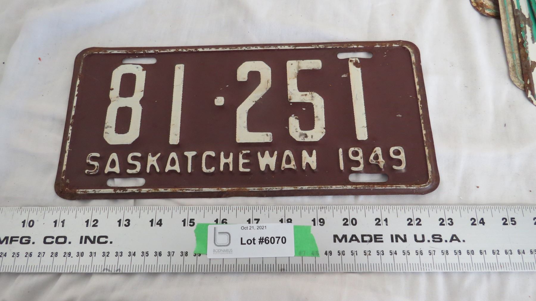 1949 Sask License Plate