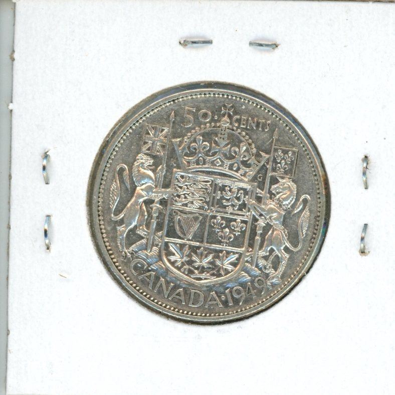 1949 Silver 50 Cents with Hearing Aid in the king’s ear from a Die Clash. Scarce. VF-30. Nice.