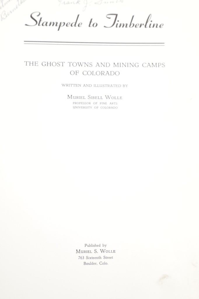 Featured in this lot is this 1949 issue of Stampede to Timberline by Muriel Sibell Wolle. The book features a wonderfully and professionally crafted construction that illustrates stories of the ghost towns and mining camps of Colorado. The condition of this book shows some serious wear to the outside cover and shows some browning to the pages. The measurements of this book is 10 3/8" x 8". The collective weight of this book is 3lb 4oz.