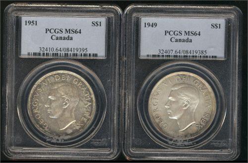 1949 and 1951 both are PCGS graded MS64, two nicely toned examples.