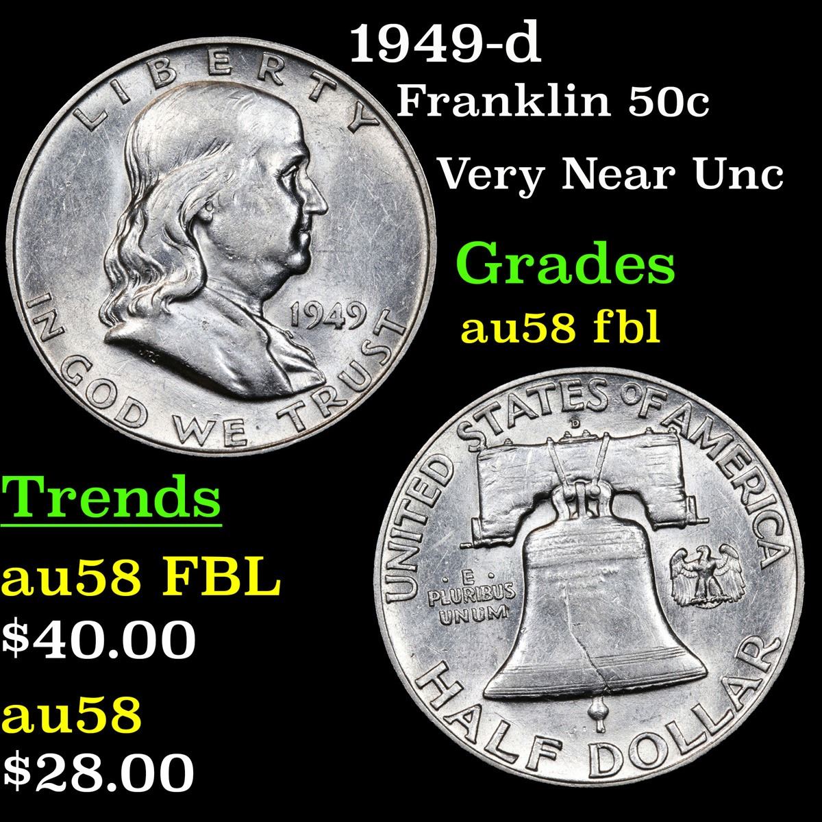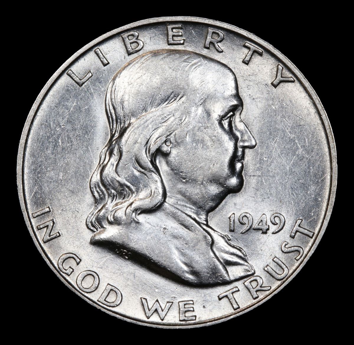 1949-d . Very Near Unc Franklin Half Dollar 50c Grades Choice AU/BU Slider FBL.