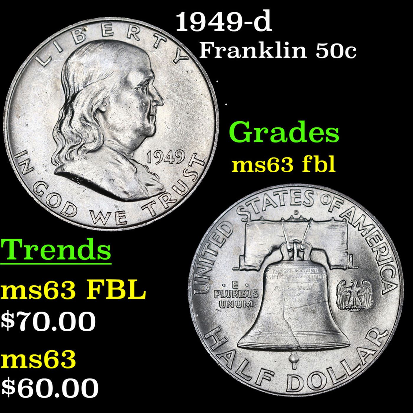 1949-d Franklin Half Dollar 50c Grades Select Unc FBL.