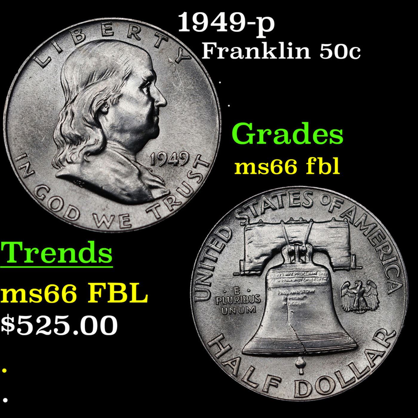 1949-p Franklin Half Dollar 50c Graded ms66 fbl By SEGS.