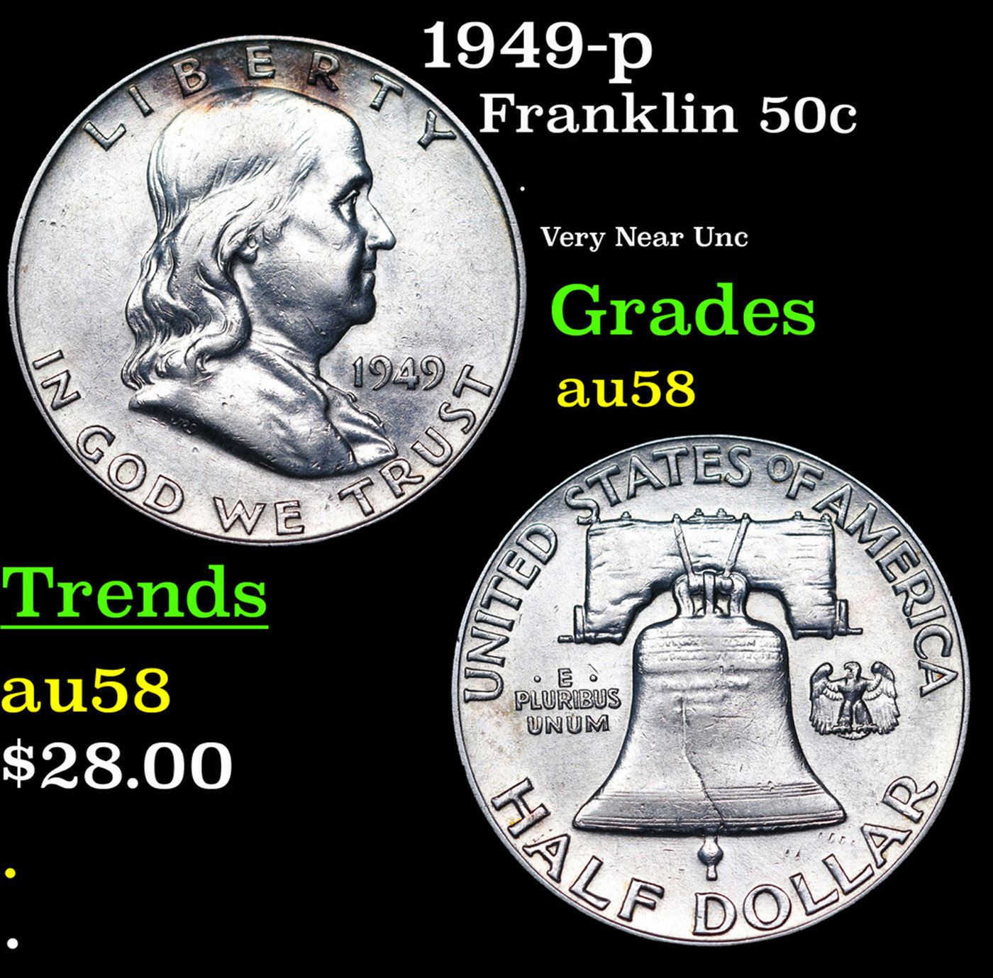 1949-p Franklin Half Dollar 50c Grades Choice AU/BU Slider.