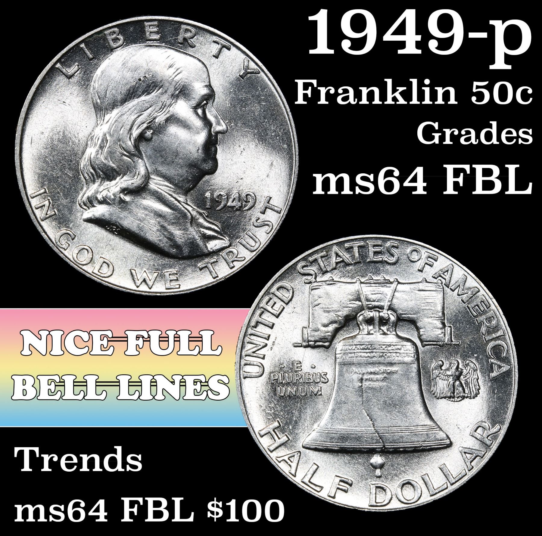 1949-p Franklin Half Dollar 50c Grades Choice Unc FBL.