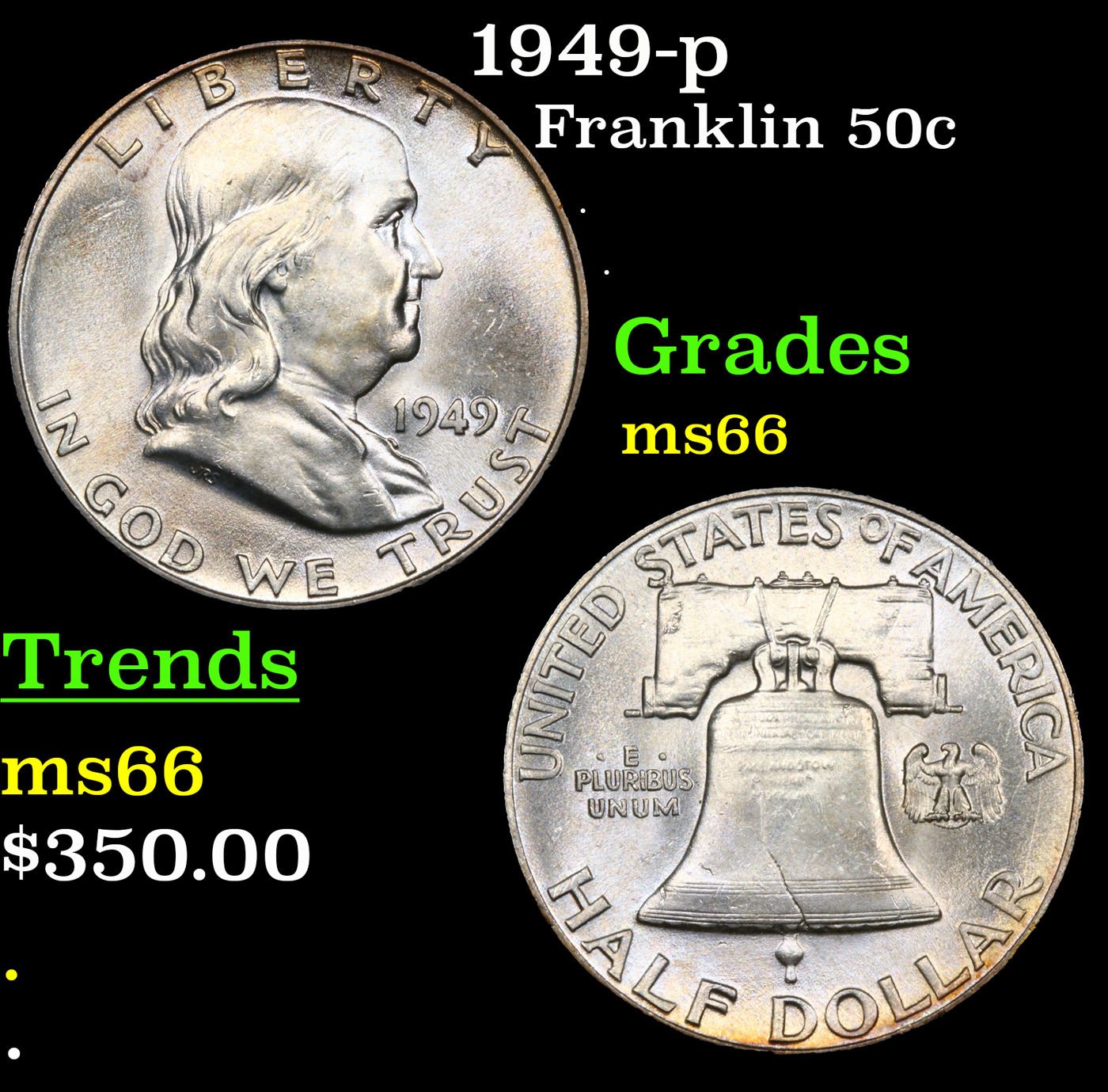 1949-p Franklin Half Dollar 50c Grades GEM+ Unc.