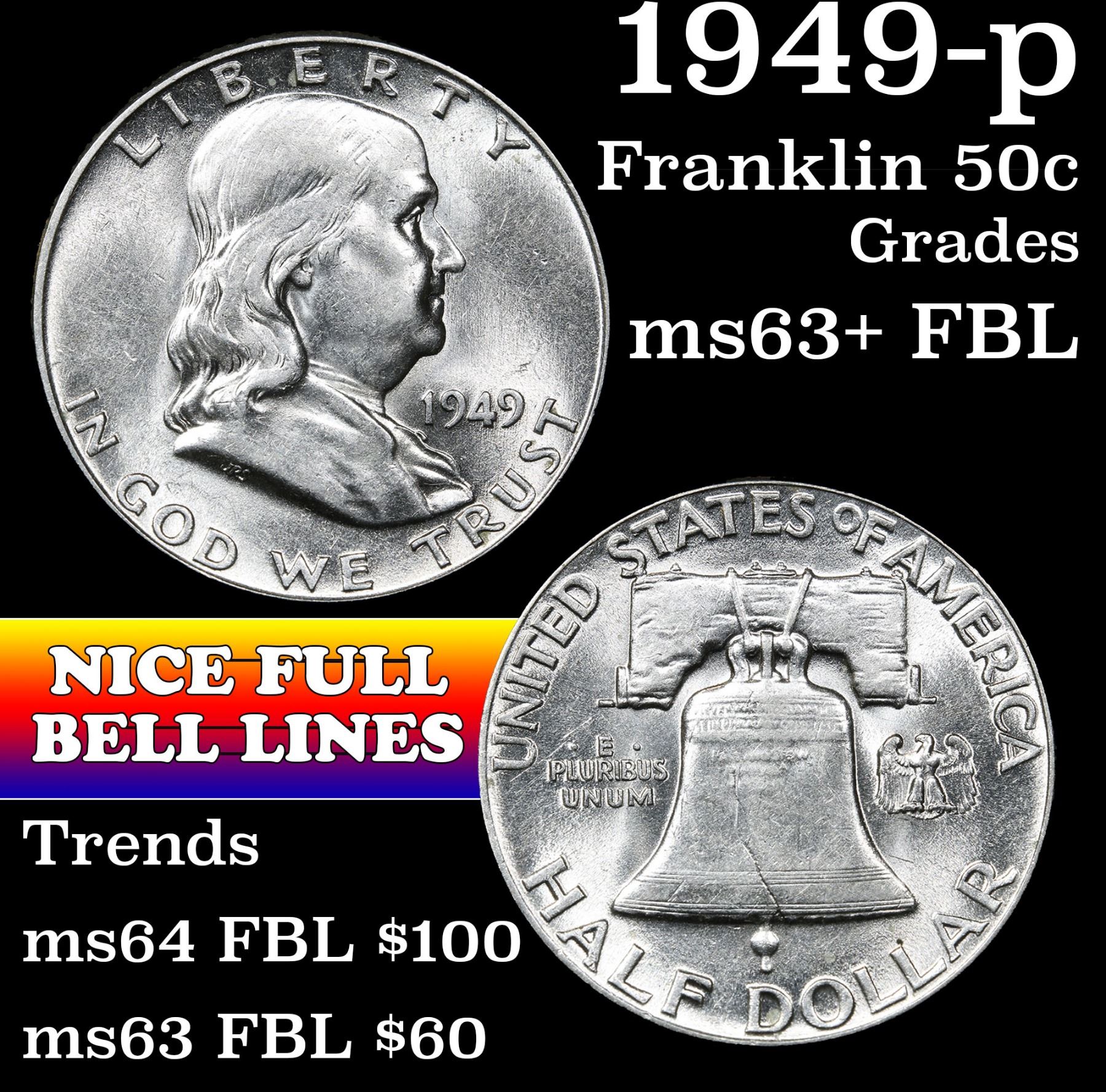 1949-p Franklin Half Dollar 50c Grades Select Unc+ FBL.
